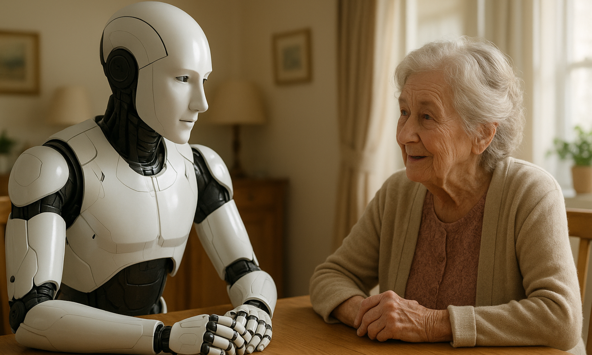 Robot social diseñado para acompañar a personas mayores, brinda compañía, conversación y apoyo emocional.